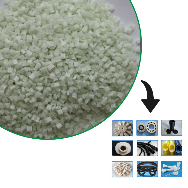 Aplicaciones: Se utiliza en la fabricación de piezas para maquinaria, automóviles y dispositivos químicos y eléctricos, como engranajes, rodillos, poleas, ejes de rodillos, álabes en cuerpos de bombas, aspas de ventiladores, anillos de sellado de alta presión, asientos de válvulas, guarniciones, bujes, diversas manijas, marcos de soporte y capas internas de aislamiento de cables, entre otros.